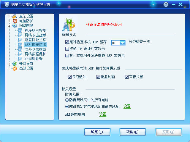 注意:很多人说监控ARP防御是没有开启的,其实你在非局域网环境下ARP是不会开启的,因为这东东只有在局域网环境下才有用。