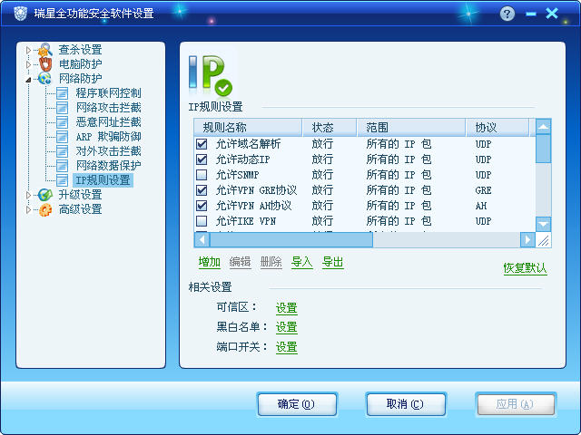 这里需要注意的是在选择规则后(在前面打钩)还需要在“放过”的位置点击鼠标右键才能选择设置