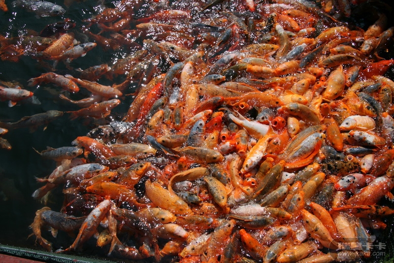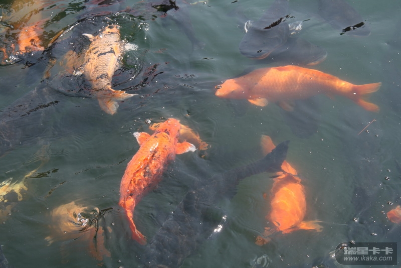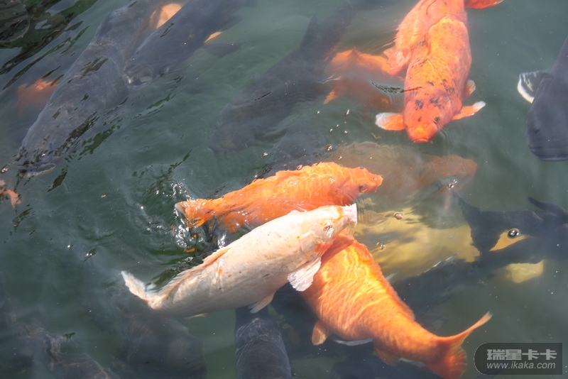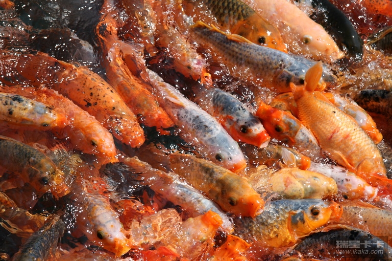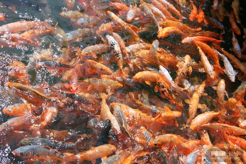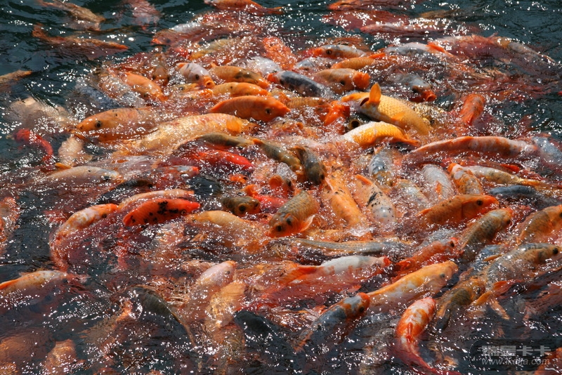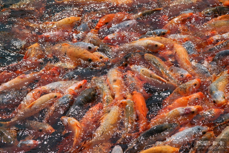 其实这样的情况可以在放生池看到,我这边有个地方放生池里一把饲料就能引出那么多来,只是水太脏了,照片上的水好清,看着很惬意~~