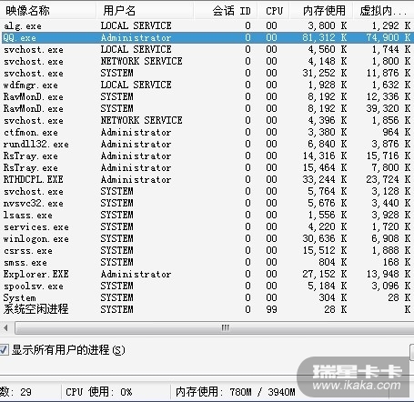 我接触计算机多年,电脑水平还行,朋友有啥问题都找我帮忙处理,尤其是软件方面,至于杀毒软件,我要求不高,我主要看重界面好看,卡巴太卡,NOD32的误杀太高(我下的某些软件,我知道不是病毒,却给我杀掉),我觉得瑞星就一般,严重病毒杀不了,普通恶意插件等我都能手工处理,XP的进程多少个我烂熟了,有些问题还有谷歌和百度帮忙!