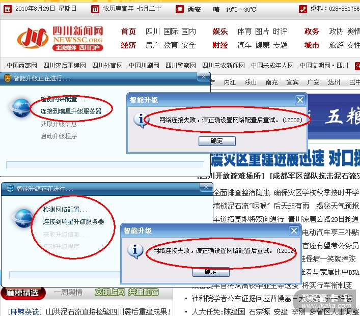 重装windows 7以后瑞星无法升级“网络连接失败,请正确设置网络配置后重试(12001)”