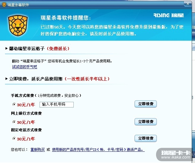 不过,我记得2天前突然出来一小块什么提示,说是瑞星抽奖什么的,还要输入杀毒软件的序列号、ID等,我输了一次说是不行,就关了;莫非与此有关?难道瑞星防火墙没用吗?还是瑞星在钓鱼?