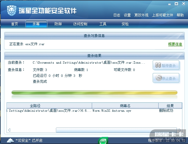 瑞星可以查杀杀毒软件升级到最新版全盘杀毒。