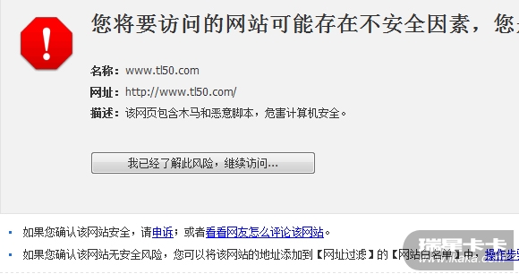 http://www.tl50.com查了一下网页,没有发现被挂马现象。其他杀毒软件均正常访问。没有升级瑞星防火墙之前不会出现这种情况。今天手动升级后,刚出现的。