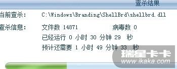 我的已注册版本瑞星升级到 shelldr.dll 文件时杀毒软件好像是死了。也就是停在shelldr.dll文件处,杀毒软件就像是死机了,时间走,查杀就不走了,死在那里。关不掉。只有最小化,电脑作图,运行其他软件一切正常。配置:华硕G41,内存:金泰克DDR800/2G,处理器:英特尔酷睿E5500,硬盘:WD3200,电源:长城350.操作系统:win7旗舰版。