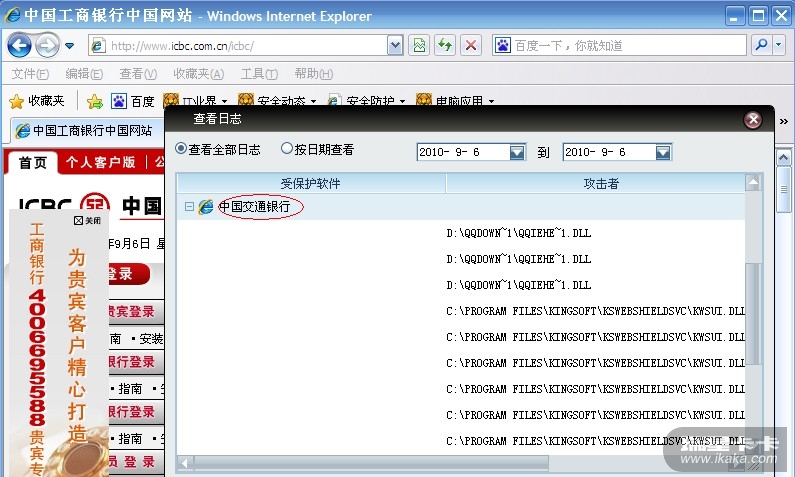 问题描述:打开工商银行网站,日志中记录的是交通银行(浏览器IE8),如图