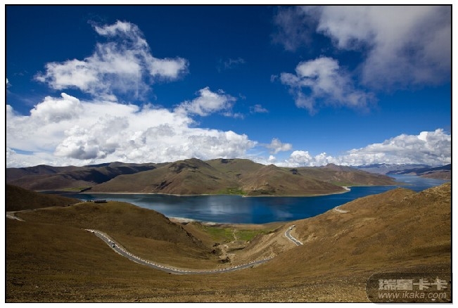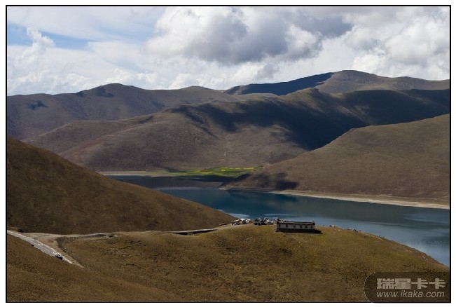 站在山口,往去日喀则的方向望去,山下就是美丽的圣湖——羊卓雍错!