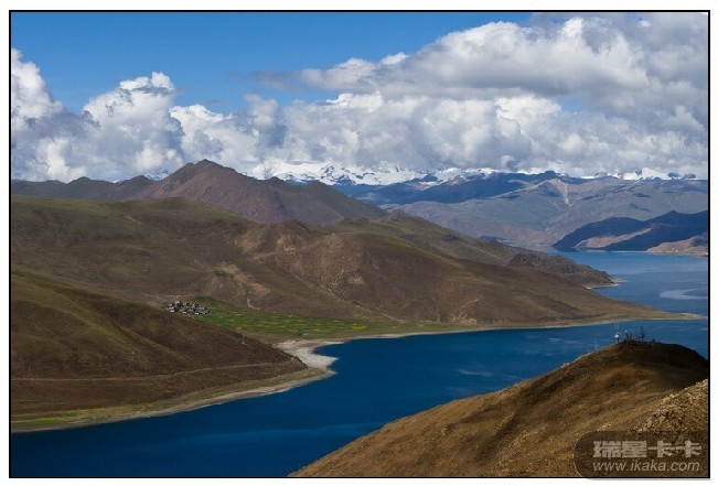 藏语意为“碧玉、草原之湖”。一称牙木鲁克湖、牙买加湖,又称白地湖。位于西藏南部浪卡子县境。从拉萨往南行100公里即达。该湖是喜马拉雅山脉北坡湖盆带中的最大内陆淡水湖。水深30一40米,面积约800平方公里。湖面澄澈晶莹。夏季有成群水鸭翔集,湖中盛产裸鲤鱼。湖滨土质肥沃,牧草丰富,宜农宜牧。湖南面有