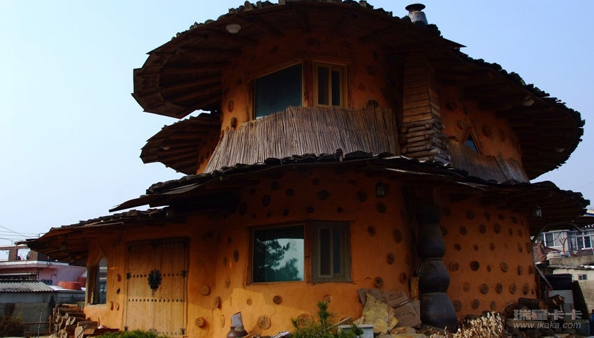 一座结合了旧时山民木屋和后现代艺术的房子,是当地村长的家