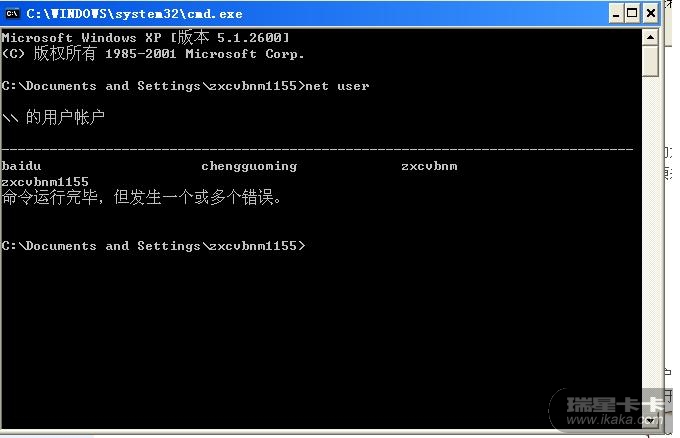 我刚才在命令行里输入“net user",在弹出的对话框看到这样的文字: