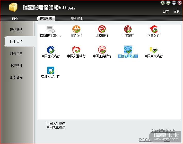 直接点击网上银行---民生银行,右下角操作键全部灰色无法点击......其实这里已经打了对号,但首页还是无法显示保护。