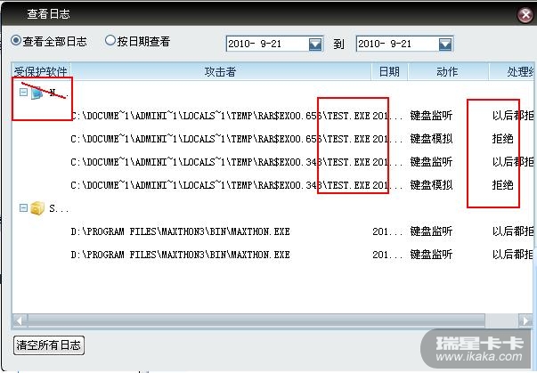 发现瑞星保护 记事本程序时,当运行test 进行监听时,无法在键盘中输入字符,但在test中却可以截获字符!!!