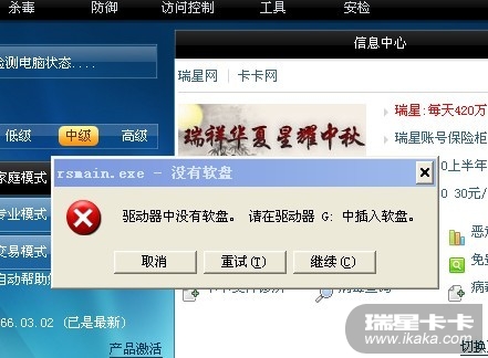我一打开瑞星全功能安全软件2010就弹出以下提示,不断的弹出提示。关闭了瑞星就不弹了。