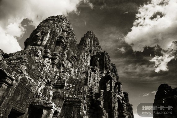 巴揚寺的闍耶跋摩七世巨大頭像帶著一抹不得不令人駐足凝望的微笑,在連年征戰的苦難時代,是不是篤信佛教的闍耶跋摩七世晚年回首一生,是對殺伐的血腥有了悲憫生靈的感悟,還是觀透世間原本就是一個共業融爐後的頓悟?七世王為自己刻劃了一抹在後世成為高棉印象代表的智慧微笑………我想,當年除了七世王的心境,必然還有一位能與王心領神會的雕刻藝術師,理解七世王企求寧靜盛世的慈悲,才能打造如此傳神唯美的雕像吧!我端詳許久,等著輪番拍照的觀光客離開後趁光線透過雲隙照射的剎那按下快門,直到現在,我的心還停留在那一抹微笑的石像前。