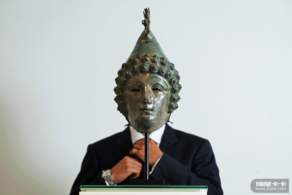 22、9月13日,英国伦敦,佳士得拍卖行员工展示克罗斯比·加勒特头盔。这顶古罗马青铜头盔今年5月在坎布里亚郡被发现,历史可追溯到公元1世纪末期到2世纪初。它将于10月7日被拍卖,估价在20万英镑至30万英镑之间。