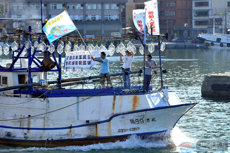 5、9月13日,台北县野柳港,台湾中华保钓协会联合香港与澳门的保钓人士驾驶“感恩99号”渔船驶往钓鱼岛海域宣示主权。