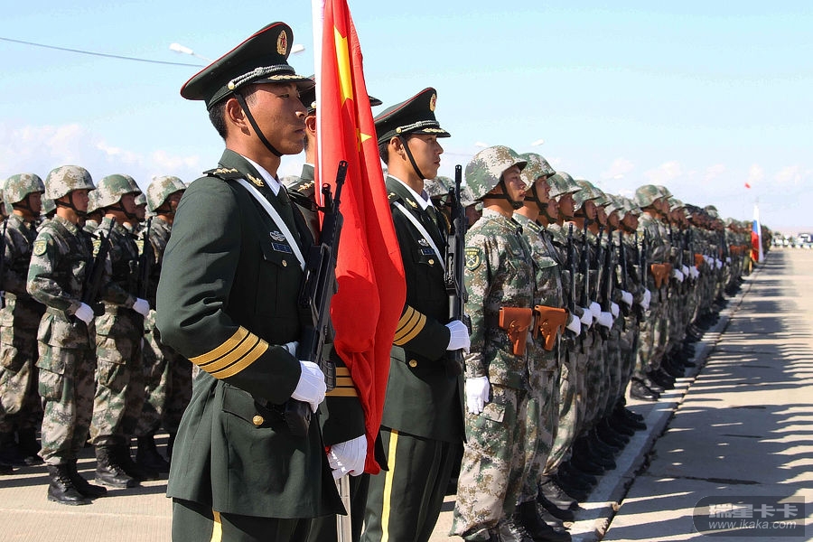 9月13日,中国参演部队在阅兵式上。中方参加演习的部队由1000余名兵力组成,包括1个陆军战斗群、1个空军战斗群和1个综合保障群参加演习。