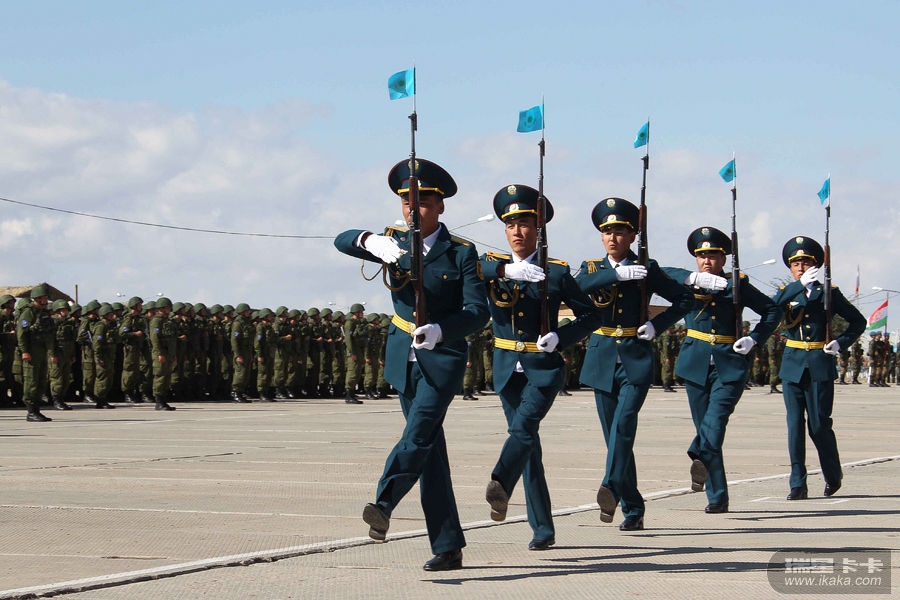 13、9月13日,在位于哈萨克斯坦马特布拉克训练场的野战兵营举行的“和平使命-2010”上海合作组织成员国武装力量联合反恐军事演习开训仪式上,标兵就位,阅兵式开始。