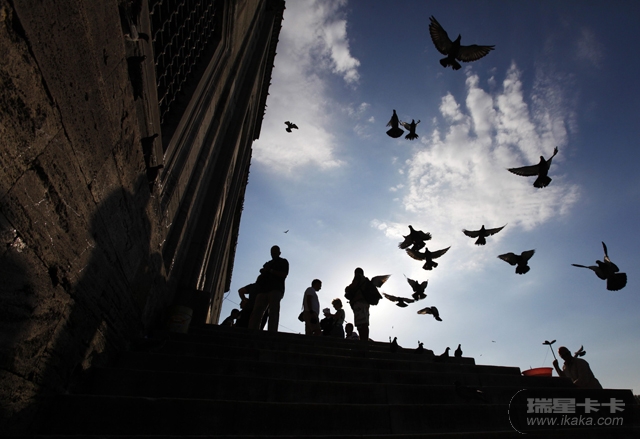 19、9月13日,周一,伊斯坦布尔耶尼清真寺前的人们在喂食鸟儿。
