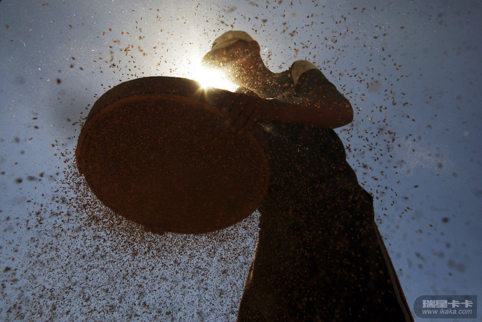21、9月13日,约旦河西岸城市,一名巴勒斯坦农夫正在筛芝麻。每年,约旦河西岸地区都会出口数百万吨的芝麻,用来交换糖果、石油等物资。