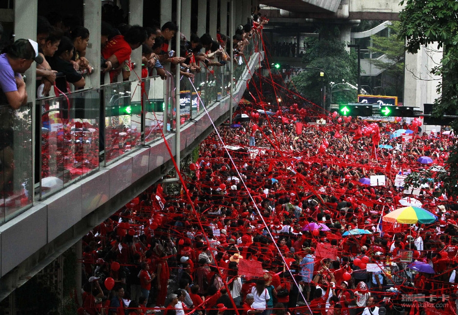 泰国反政府组织“红衫军”19日下午在曼谷市中心举行集会,纪念他信政府被推翻4周年以及“红衫军”集会被驱散4个月。从当地时间当天上午9时开始,上千名“红衫军”成员前往曼谷市中心的拉差巴颂路口。之后,这一地区的集会人数持续增加,下午5时左右达到近万人。