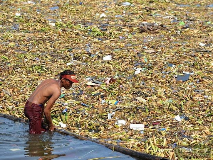 34、9月19日,菲律宾马尼拉湾举行义务清洁河面活动。由于水草疯狂生长、人们乱扔垃圾,菲律宾马尼拉湾河面上已经漂满了各种杂物。有些河段垃圾几乎覆盖了全部水面。