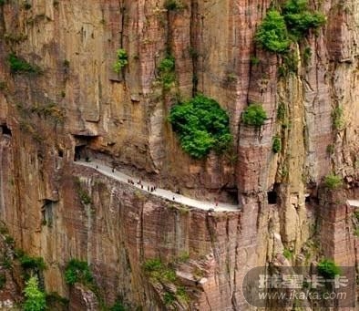回龙村:位于河南太行山脉之中,当地山势险峻,如果不仔细看,你可能都注意不到悬崖上有一条小道,这是连接山上山下居民唯一的路,当地人称它“老爷天梯”。