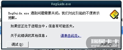 如题,我的是老版本的瑞星,今天重做系统安装瑞星结束,就出现了这个【RegGuide.exe 错误】问题,请各位大侠指点迷津!!!先谢过~~