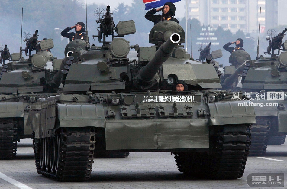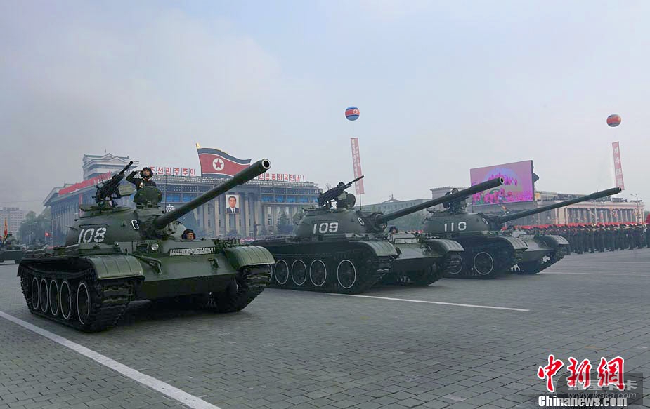 更为老旧的T-55/59式坦克方队。据军事专家估计,朝鲜军方目前共装备有3500-3900辆各型坦克,其中多数都为前苏联时期生产。