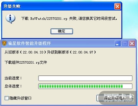 我的瑞星为什么升级到半途中,不能升级了?我尝试过很多次,试两天,都没有成功。请帮忙解决谢谢!! 请参见截图图,