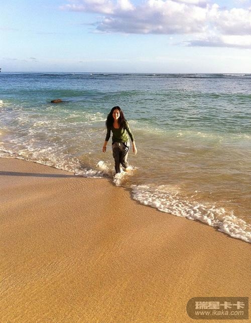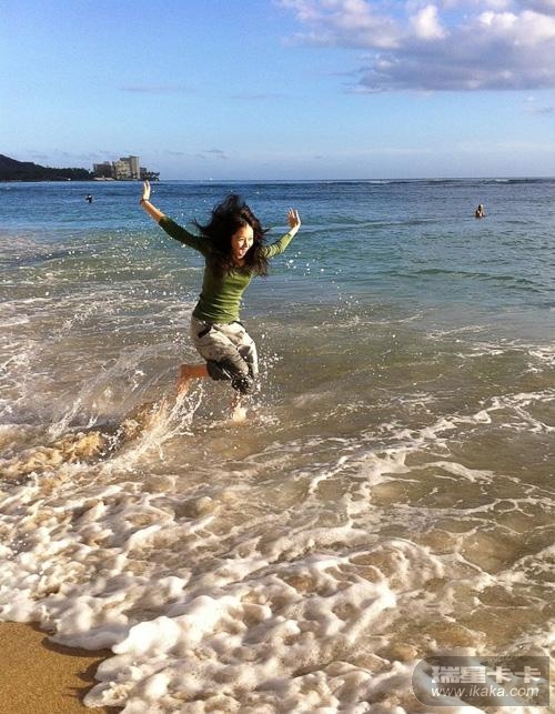徐若瑄到达夏威夷入住酒店之后,赶忙跑向海滩尽情玩耍,任由海水浸湿衣裤,调皮率真。