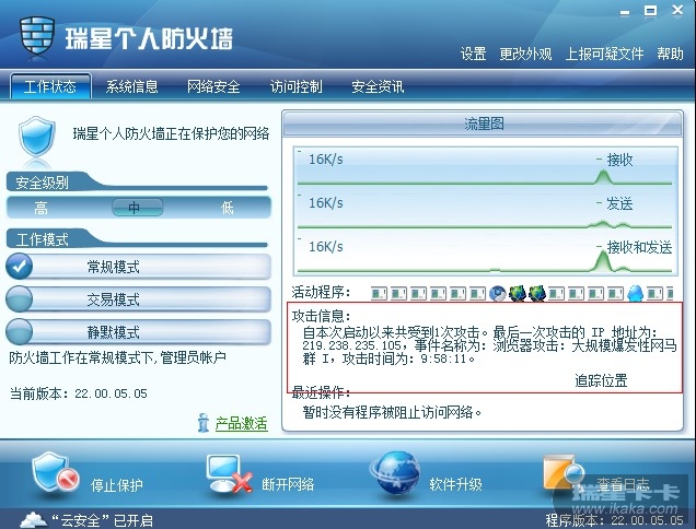 你好,问一下我在浏览卡卡安全论坛时,怎么就受到了攻击啊?刚进论坛不久就被攻击,查询IP,是北京电信:kaka6: