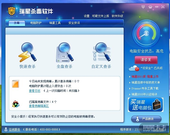 瑞星2011昨日已经正式发布,目前版本为2010的用户会分批次升级到2011版