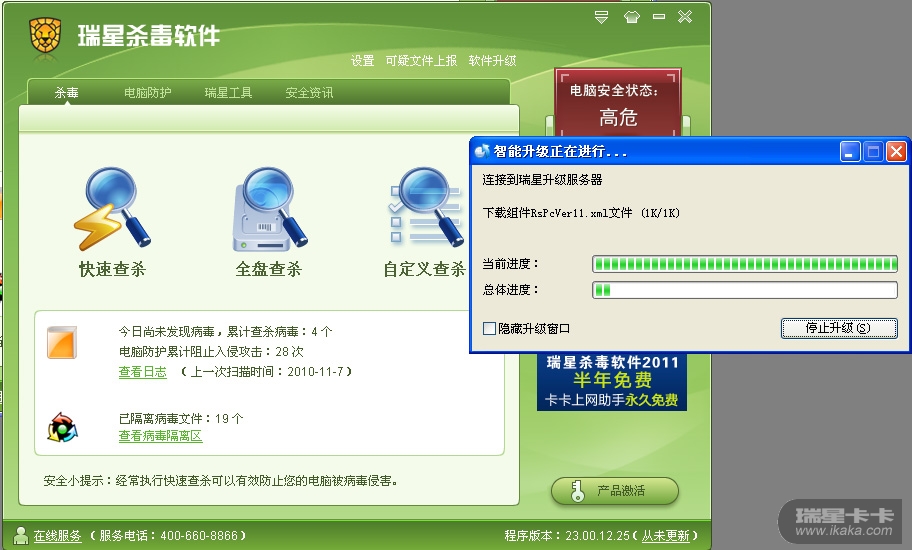 瑞星让我无言,这个问题出现了,至少4天了,升级依旧无法进行!我都卸了6会了。可我的试用期刚过三分之一,怎么搞?