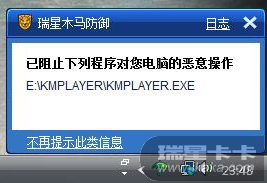 瑞星升级到23.00.11.50版本后,打开KMPlayer时却被阻止。随即用瑞星对KMPlayer安装文件夹进行查杀,告知无病毒,但一旦打开KMPlayer就被当成木马来阻止,故来此求教。