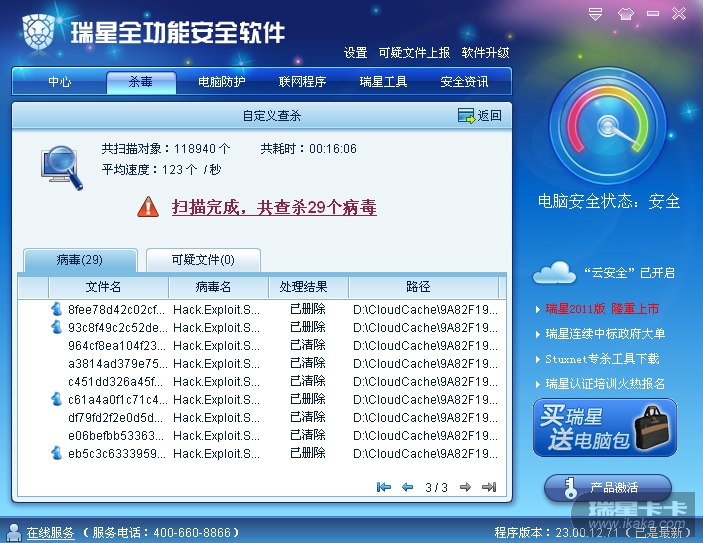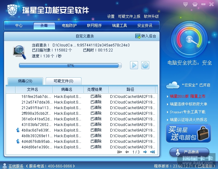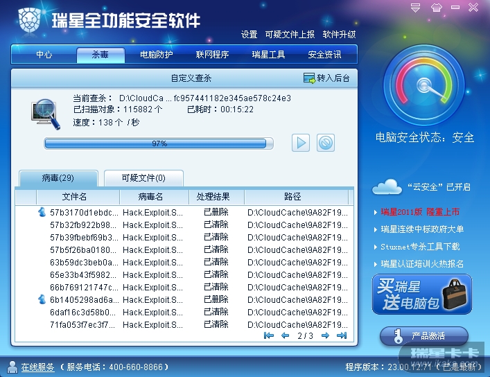 cloudcache云缓存?楼主装了什么类似云端的软件?,那是下安装包或者软件安装目录的地方,可能是瑞星误杀什么文件了吧