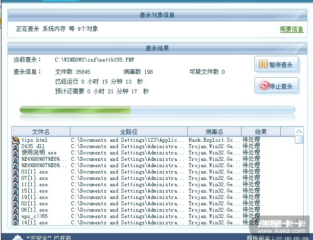 扫描结束后瑞星会再清除病毒。