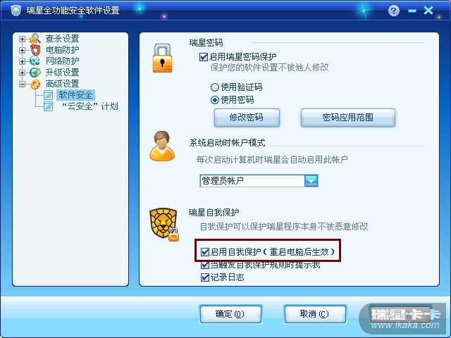我在瑞星2011版里没能找到关闭自我保护的地方。