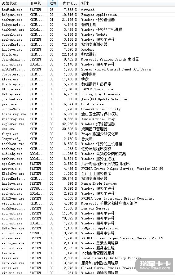 一开机,就非常的卡,处理器占用率100%,打开任务管理器,其中RAVMOND这个进程占用率,最大。最高时99%