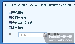 打开瑞星,设置,查杀设置,快速查杀,右侧有个“制定扫描计划”,点开后,里面有。