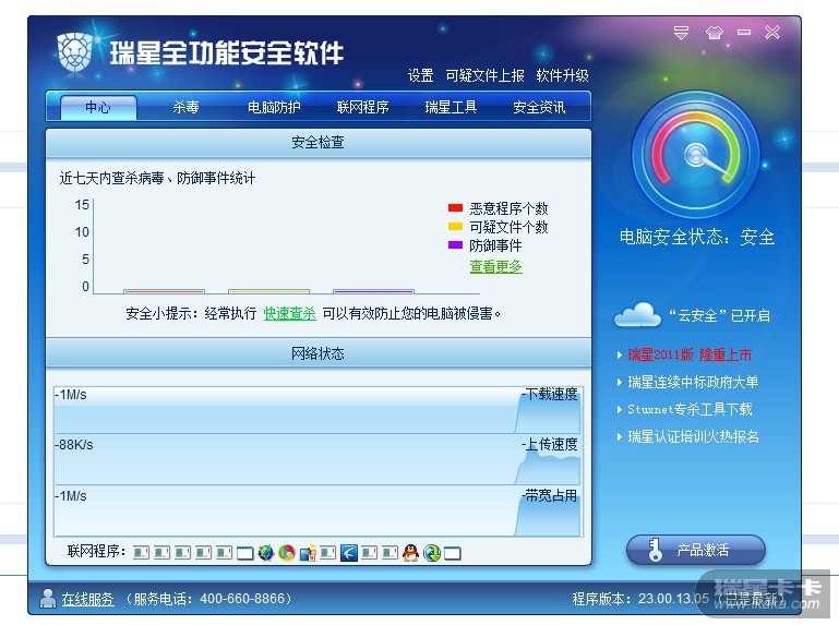 1.瑞星的产品类型(杀毒软件,防火墙,以及全功能安全软件)
