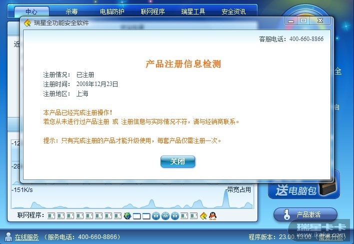 还有就是今天打开瑞星主界面,看到显示需要升级,点升级按钮没反应(图片见附件)到我发文为止一天了都不能升级