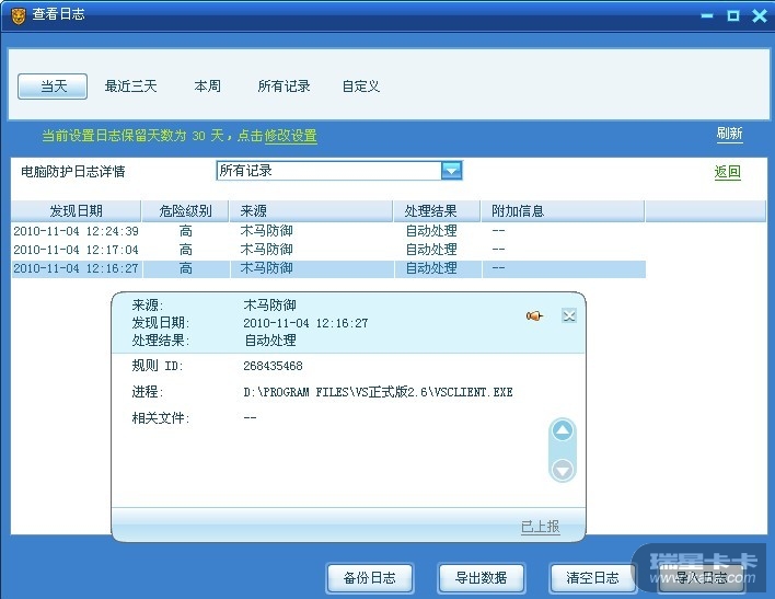 日志里面提示VS平台有木马程序,我的vs平台是2.6正式版的,以前用一直没有问题,截图如下