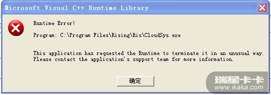 请升级瑞星至最新版本,如仍有问题,请提供瑞星软件版本号以及cloudsys.exe文件版本号。