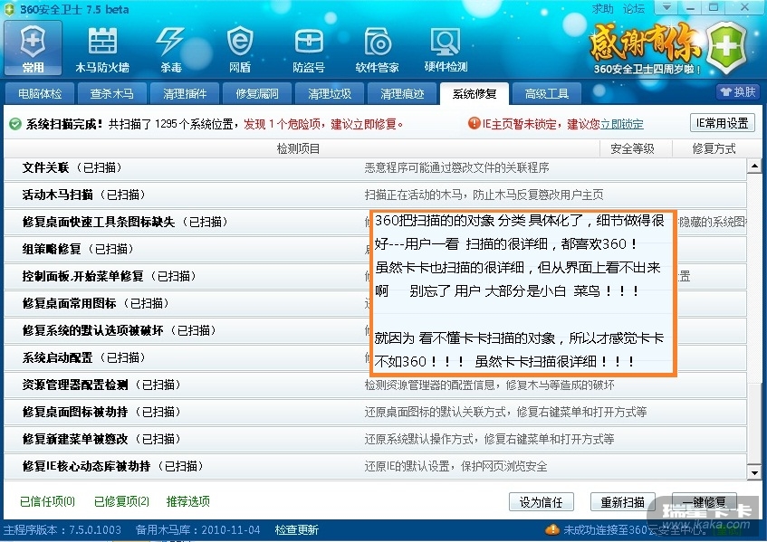 瑞星卡卡界面极不友善,操作极不人性化,笨到极致。