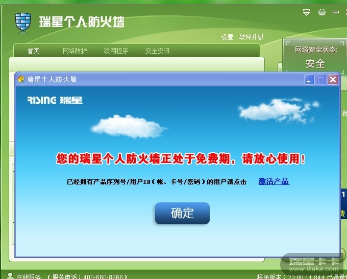 瑞星防火墙2011 beta版本 自动升级到了正式版。但是还是现实免费使用。但是不知道这个能用多久?