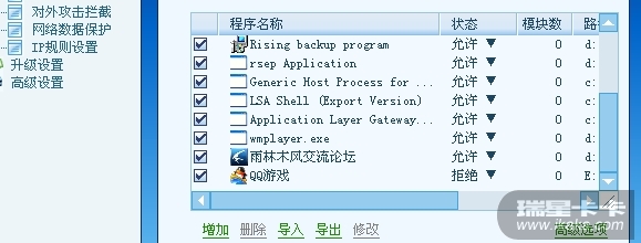 请楼主右击托盘处的防火墙/切换工作模式,选择专业模式后观察。