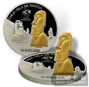3.库克群岛复活岛巨石人像这些具有纪念意义的硬币上,刻的是著名的复活岛巨石人像,镀金的摩艾巨人像可以竖起来,给您的硬币收藏,增添新的视角。传说中称,古代的每个巨石人像中,都有一只永生的仓鼠转动轮子,给每尊石像注入能量。