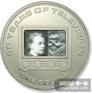 5.库克群岛纪念电视发明80周年这枚硬币是在2006年,为了纪念发明电视 80周年而铸造的,纯银币内的全息图像,代表了当时电视机传送的第一幅图像。左侧图像是电视机的发明者,英国科学家约翰?洛吉?贝尔德,右面图像是至今困扰电视机的电鬼(模糊图像)。