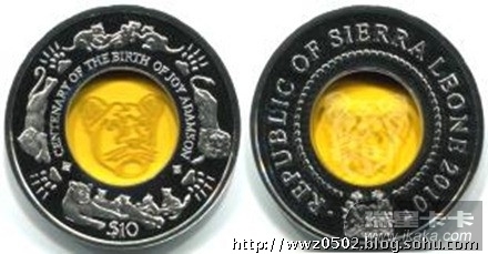 15.**水晶狮子艾尔沙, 塞拉里昂这枚硬币是为了纪念(野生动物保护学家,作家)乔伊-亚当森女士的一生,她是《生而自由》(又名《狮子和我》)的作者,该书中名为艾尔沙的小狮子,被刻到了**水晶之中。该书还被拍成了电影,并获得1967年奥斯卡最佳原创电影配乐、最佳原创电影歌曲两项大奖。
